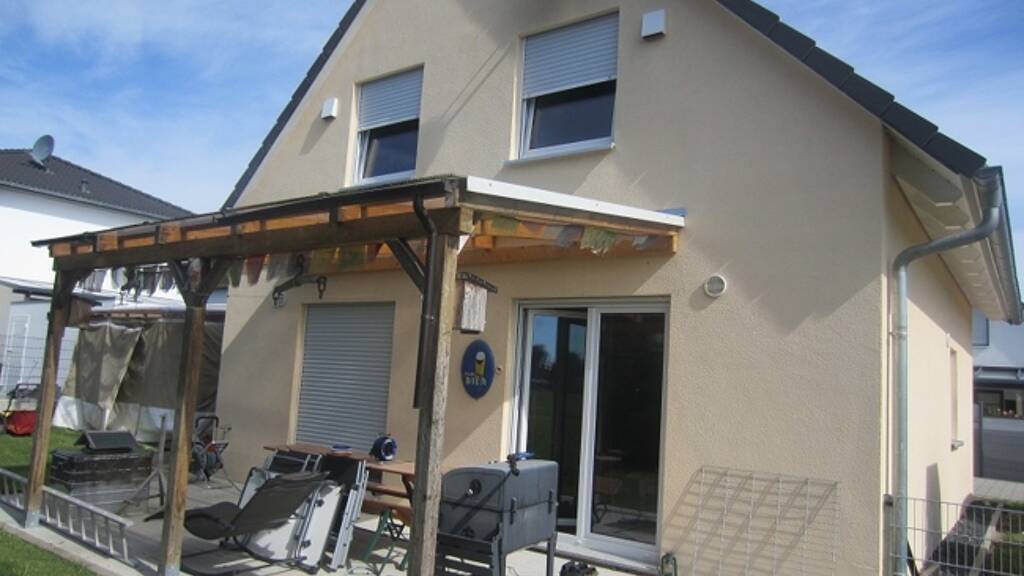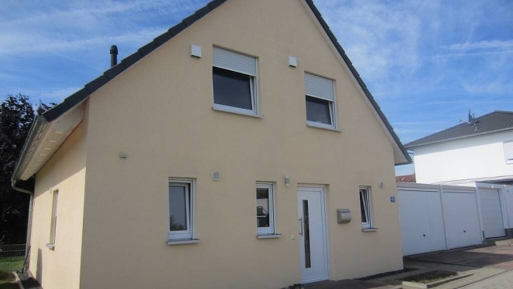 Das Einfamilienhaus wurde 2018 Erbaut. Die Böden sind mit Laminat belegt oder gefliest. Die Fenster sind aus Kunststoff. Es befindet sich eine Doppelgarage und drei Stellplätz auf dem Grundstück. Es sind 2 Bäder und drei Schlafzimmer vorhanden. Das Wohnzimmer und die Küche bilden eine Einheit.