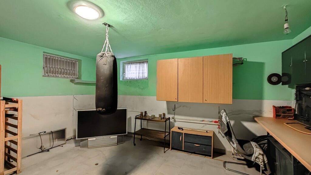 Die verbleibende Nutzfläche verteilt sich auf den Keller mit ca. 92 m² (welcher neu verfliest werden muss), der drei Lagerräume, einen Heizraum und einen Tankraum umfasst. Zusätzlich gehört eine Garage mit ca. 36 m² zur Liegenschaft, die ausreichend Platz für ein Fahrzeug und Stauraum bietet.