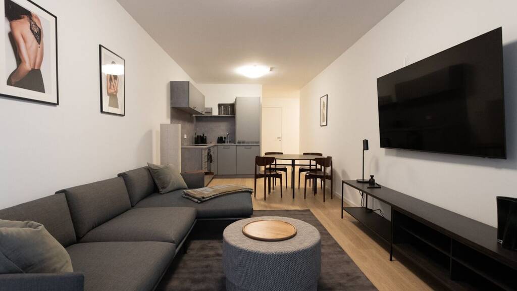 Die luxuriös ausgestaltete 3-Zimmer-Einheit im ersten Liftstock verfügt über eine Wohnfläche von ca. 62 qm sowie eine straßenseitige Loggia mit ca. 4 qm und einen Gartenbereich (ca. 39 qm) im Innenhof. Über den Vorraum sind alle Zimmer zentral begehbar: die Wohnküche inklusive vollausgestatteter Designerküche sowie gemütlicher Couchecke mit TV-Gerät, zwei hofseitige Schlafzimmer mit Boxspringbett und Zugang zur Terrasse, ein traumhaftes Badezimmer mit Fenster (Walk-In-Dusche, Badewanne, Waschtisch, Handtuchheizkörper) sowie die separate Toilette mit Handwaschbecken. Bei der Auswahl der Einrichtung wurde auf höchste Qualität und außergewöhnliches Interiordesign wertgelegt. Das Apartment ist in den Innenhof sowie auf die Werdertorgasse ausgerichtet.