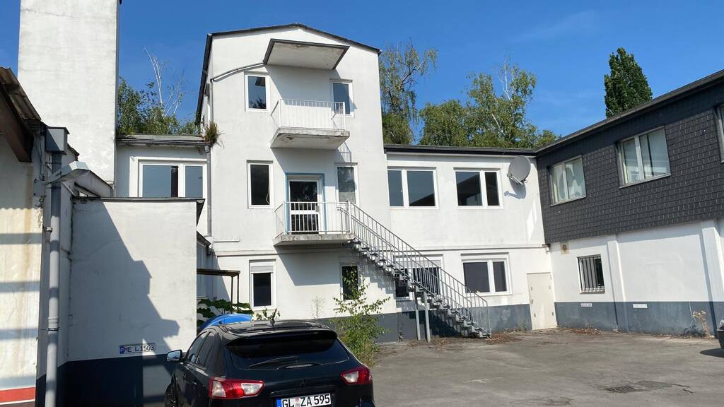 Büro - oder Hallenfläche insgesamt 240 qm, unrenoviert auf der 1. Etage, Zufahrt und Stellplätzen vor der Tür im Stadtzentrum von Langenfeld.