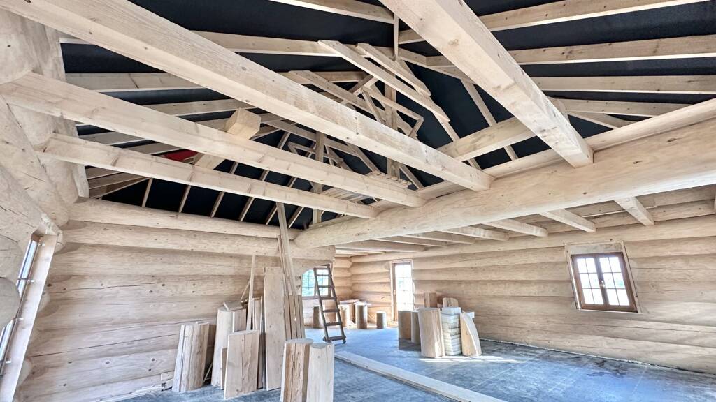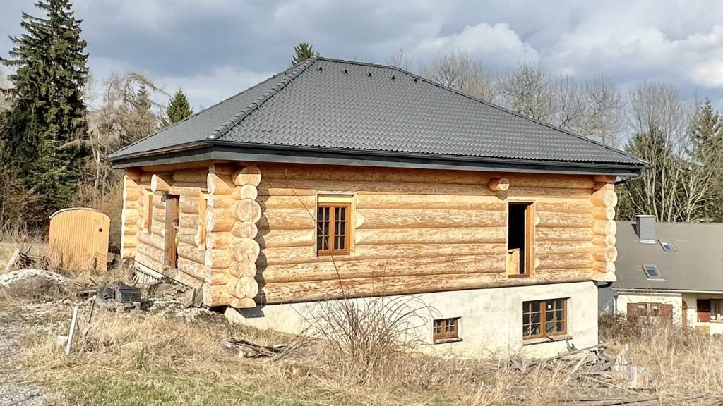 Ein echtes Highlight ist das Obergeschoss in massiver Holzbauweise aus hochwertigen Rundstämmen, die nicht nur für eine hervorragende Wärmedämmung sorgen, sondern auch ein einzigartiges, gemütliches Wohnambiente schaffen.