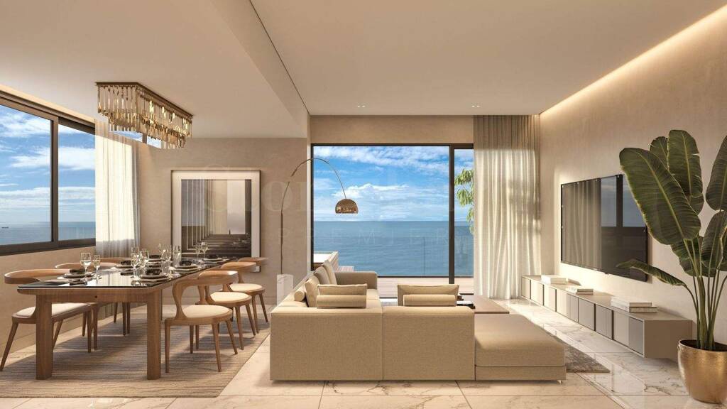 Die Wohnung befindet sich im 14. Stock des Gebäudes und hat eine Gesamtfläche von 133 m², davon 119 m² Wohnfläche und 14 m² Außenfläche. Hohe Decken und bodentiefe Fenster rahmen die atemberaubende Meereskulisse perfekt ein. Die Wohnung ist äußerst komfortabel und funktional gestaltet und umfasst einen großzügigen, offenen Wohnbereich mit integrierter Küche und Essbereich, ein Hauptschlafzimmer mit Bad en suite, Ankleidezimmer und Terrasse, ein zweites Schlafzimmer mit Bad sowie ein Gäste-WC. Eines der beeindruckendsten Merkmale der Wohnung ist jedoch der wunderschöne Swimmingpool auf der Terrasse, von dem aus man einen herrlichen Meerblick genießt.