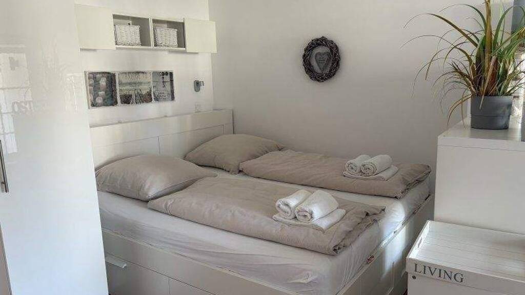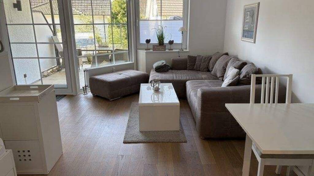 Objektbeschreibung ca. 41 qm Wohnfläche im EG eines gepflegten Objektes, Baujahr 1991, komplett möbliert, derzeit in der Ferienvermietung Raumaufteilung offene komplett ausgestattete Küche mit angrenzendem Essplatz für 2 Personen ist geschickt in den Flur integriet, eine große Fensterfront im Wohnzimmer sorgt den ganzen Tag für eine lichtverwöhnte Atmosphäre und das große Doppelbett ist durch einen Raumteiler separiert.