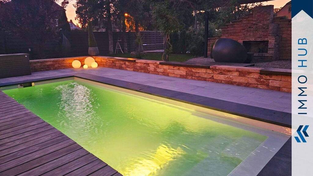 Das parkähnlich gestaltete Grundstück ist ein wahrer Traum. Im Zentrum thront ein beheizter Pool (neu installiert 2022), der an warmen Tagen für Erfrischung sorgt. Zahlreiche exklusive Highlights verleihen dem Anwesen einen einzigartigen Charakter: