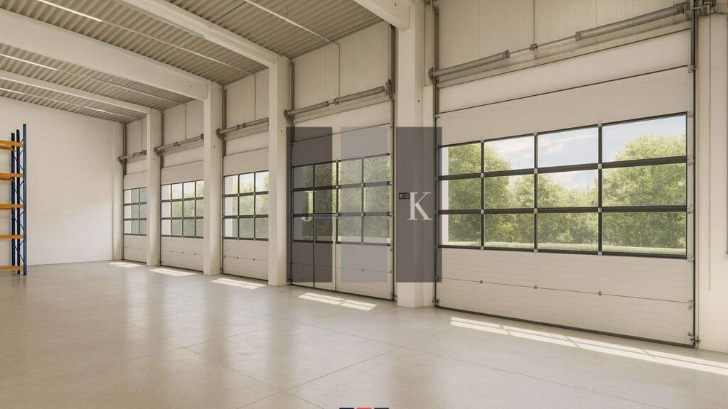 Zur Vermietung steht eine moderne, stützenfreie Hallenfläche mit rund 1.140 m² im Erdgeschoss. Die lichte Höhe von ca. 8,50 bis 9,70 m ermöglicht eine flexible Nutzung, ergänzt durch mehrere ebenerdige Tore und LKW-Docks für effiziente Anlieferung. Beheizt und mit sanitären Einrichtungen ausgestattet, bietet die Fläche beste Voraussetzungen für Gewerbe und Logistik.