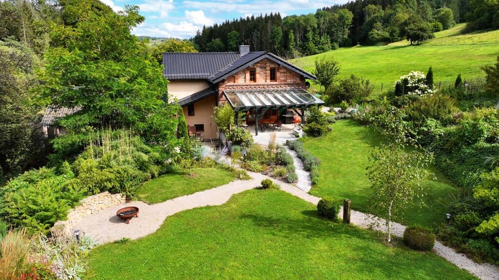 Bei dem Anwesen handelt es sich um ein modernes Landhaus in absoluter Alleinlage, umgeben von einem aufwendig gestalteten Park mit großer Teichanlage, einem hochwertigen Saunahaus mit Naturschwimmteich und diversen Nebengebäuden.
