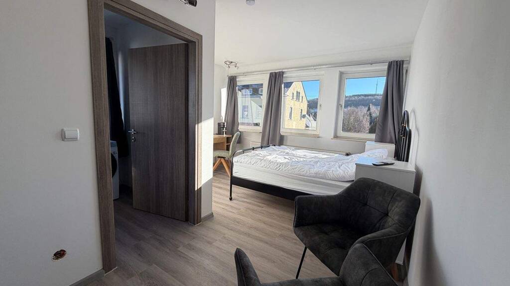 Das Obergeschoss bietet ein besonders renditestarkes Konzept für die Kurzzeitvermietung. Hier stehen 8 vollständig fertiggestellte und neu ausgestattete Zimmer zur Verfügung. Jedes Zimmer verfügt über ein eigenes separates Bad sowie eine vollständige Möblierung inklusive Bett, Schrank, Tisch und Fernseher. Sämtliches Inventar stammt aus dem Jahr 2025. Bei einer realistischen Vermietung von durchschnittlich 55€ pro Zimmer und Nacht ergibt sich eine monatliche Einnahme von ca. 13.200€ bei Vollauslastung.