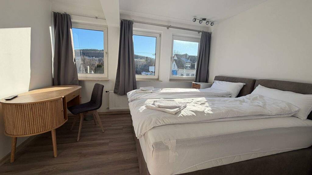 Neunkirchen liegt verkehrsgünstig im südlichen Nordrhein Westfalen zwischen Siegen und dem Rheinland und verfügt über eine solide Infrastruktur. Einkaufsmöglichkeiten, Dienstleistungen, Gastronomie sowie medizinische Versorgung sind im direkten Umfeld vorhanden. Die gute Anbindung an das regionale Straßennetz sowie die Nähe zu umliegenden Wirtschaftsstandorten machen den Standort sowohl für langfristige Vermietung als auch für Kurzzeitvermietung attraktiv.