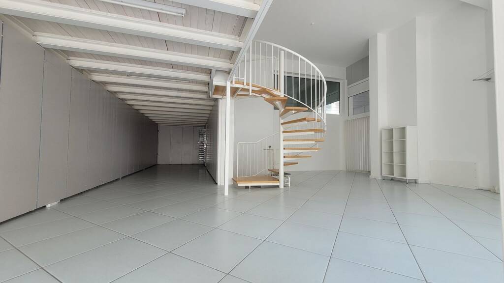 Durch die zweiflügelige, elektrische Schiebetür wird die Gewerbeeinheit betreten. Hier erwartet Sie eine lichtdurchflutete Räumlichkeit im Loftstyle. Über eine breite Treppe erreichen Sie die Empore.