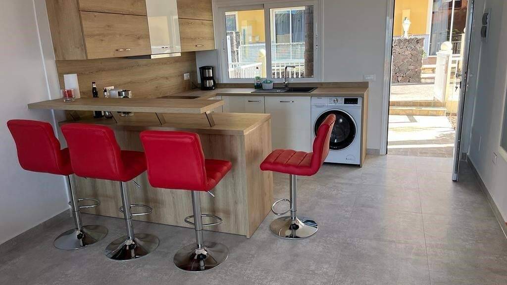 Willkommen in Ihrem neuen Zuhause in La Quinta - einem Ort, an dem Komfort, Ruhe und stilvolles Wohnen auf harmonische Weise zusammentreffen. Dieser pflegeleichte Bungalow überzeugt durch seine durchdachte Raumaufteilung, seine gehobene Ausstattung und nicht zuletzt durch die großzügige Meerblickterrasse, die zum Verweilen und Genießen einlädt. Auf einer Wohnfläche von rund 62 m² präsentiert sich die Immobilie in einem sehr gepflegten Zustand und bietet ein angenehmes Wohnambiente, das sowohl Funktionalität als auch Wohnlichkeit in den Mittelpunkt stellt. Der lichtdurchflutete Wohnbereich bildet das Herzstück des Hauses und geht fließend in die integrierte Küche über, wodurch ein offenes, modernes Raumgefühl entsteht. Große Fenster sorgen den ganzen Tag über für eine freundliche Atmosphäre und lassen viel Tageslicht in die Räume.