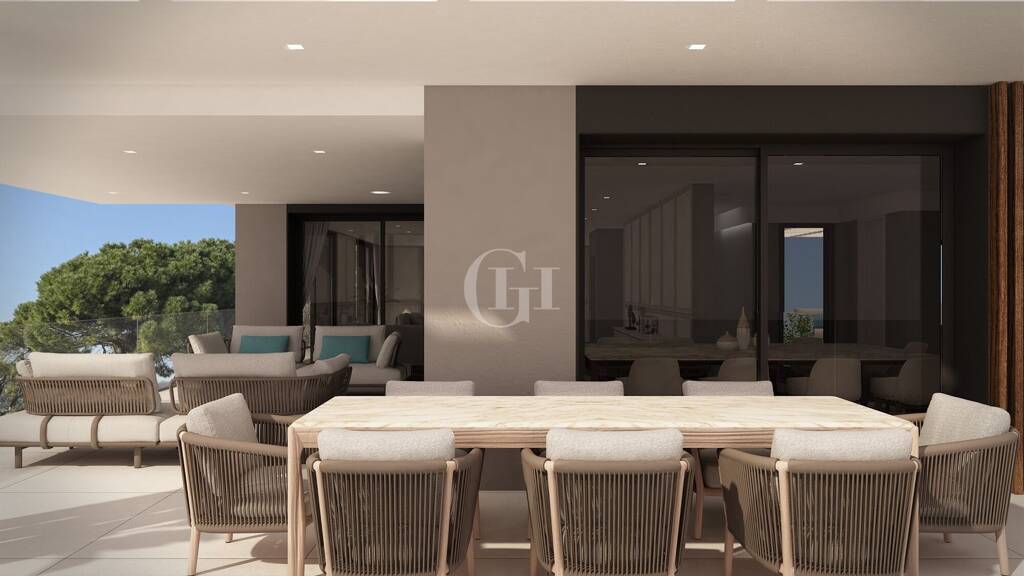 Das Erdgeschoss ist dem Schlafbereich gewidmet und umfasst drei Schlafzimmer, eine Ankleide, ein Arbeitszimmer und drei Badezimmer sowie großzügige Flure. Die Räume bieten Privatsphäre und Ruhe und stehen über überdachte Portiken und Öffnungen zum Garten in direkter Verbindung mit den Außenbereichen.