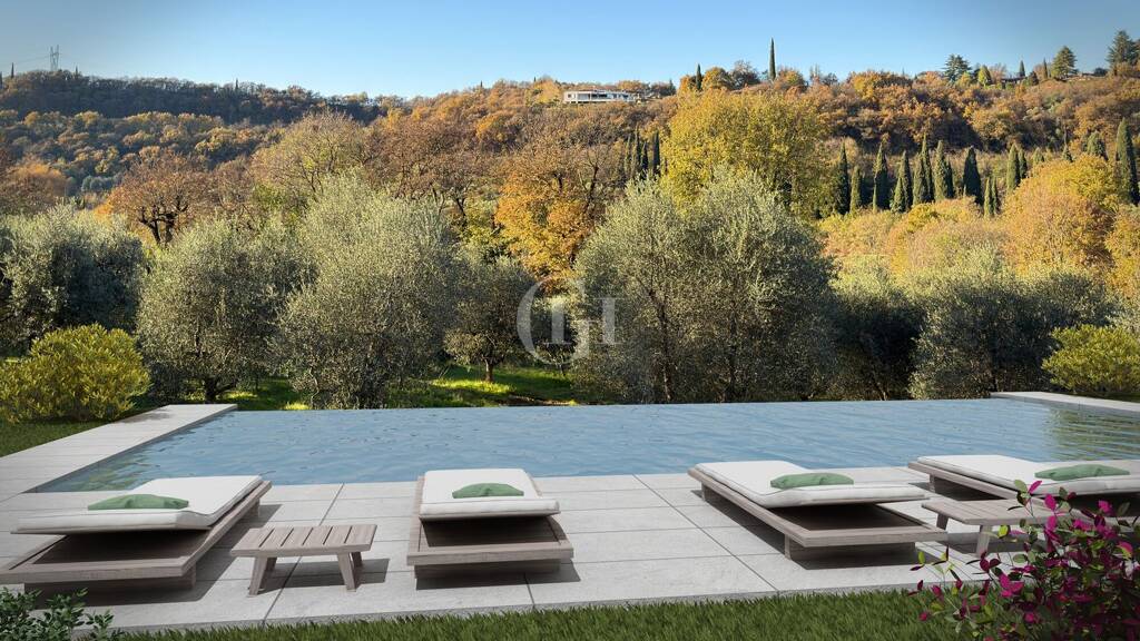 Die Immobilie befindet sich auf einem Grundstück von etwa 3.000 m², das von einem eleganten Garten und einem privaten Olivenhain geprägt ist und so ein authentisches und harmonisches Naturambiente schafft, das sich perfekt in die Landschaft der Gardahügel einfügt.