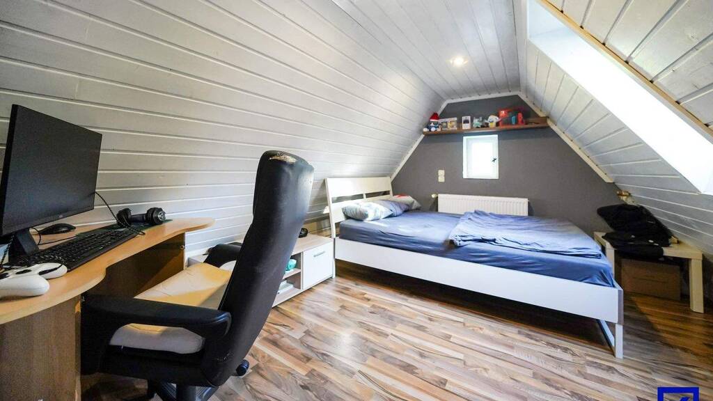 Das Haus verfügt über insgesamt vier Zimmer mit einer funktionalen und familienfreundlichen Aufteilung. Ein besonderes Highlight ist das ausgebaute Dachgeschoss, das über ein Zimmer mittels Wendeltreppe erschlossen wird und zusätzlichen, individuell nutzbaren Raum bietet.
