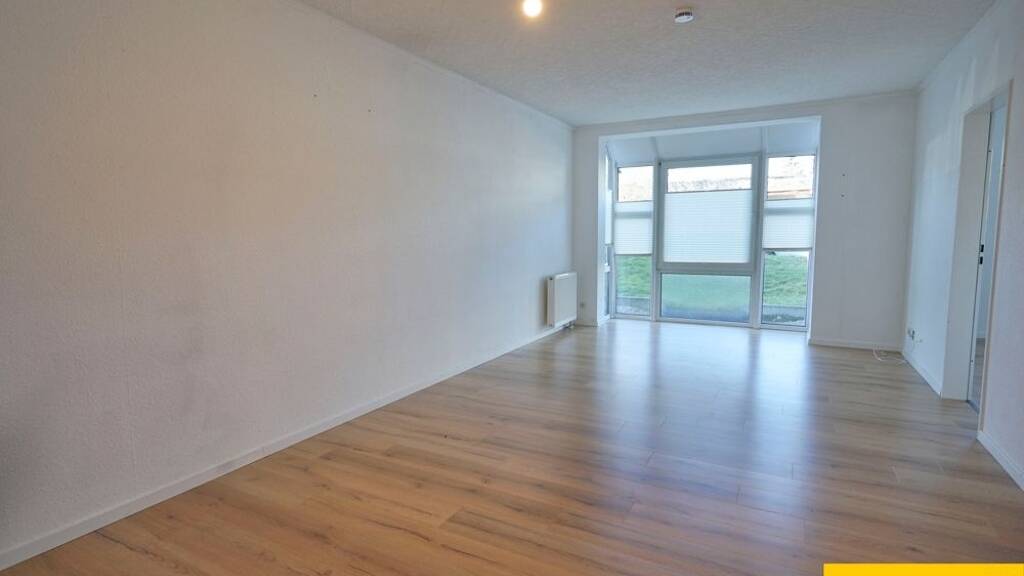 Der geräumige Wohn- und Essbereich ist dank Erker schön hell, er bietet offenes Wohnen und ist der perfekte Rückzugsort. Die neue Küche ist länglich geschnitten - passend für eine lange Zeile und eine Frühstücksecke. Weiter gibt es das große Schlafzimmer, das hell geflieste Bad mit Wanne und Dusche sowie einen Abstellraum direkt in der Wohnung.