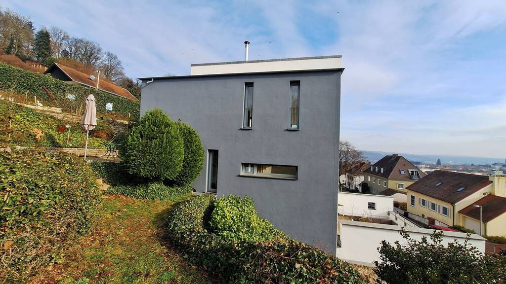 In exponierter Wohnlage von Saarbrücken präsentiert sich dieses außergewöhnliche Architektenhaus aus dem Jahr 1997 auf einem ca. 700 m² großen Grundstück. Dieses individuell geplante EFH überzeugt durch moderne Architektur im Bauhausstil, großzügiges Raumangebot und einen fantastischen Panoramablick.
