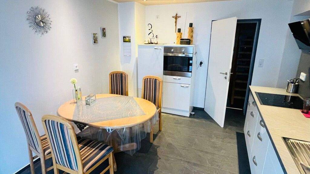 Schon beim Eintritt in die Doppelhaushälfte fühlt man sich wohl und weiß hier kann ich ankommen und mich wohlfühlen. Mit viel Liebe ist das Haus vor ca. 10 Jahren Renoviert und teilweise saniert worden. Anfang der 50er Jahre wurde es in Massivbauweise erstellt. Links im Flur befindet sich das Gäste-WC und gegenüber das geräumige Wohnzimmer mit angrenzendem Büro/Gästezimmer. Gegenüber vom Eingang liegt die schöne Küche mit Einbauküche, Essbereich und Zugang zur kleinen Terrasse. Das Bad und der Wasch-/Trockenraum grenzt an die Küche an. Über eine Treppe kommen Sie ins Dachgeschoss. Hier befinden sich 3 Schlafzimmer. Die Garage liegt gegenüber vom Haus.
