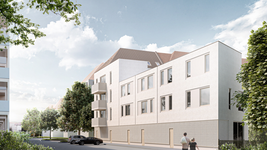 Das Stadthaus wir in Massivbauweise ohne Keller errichtet und dem Effizienzhaus-Standard KfW 55 entsprechen. Die Materialität und Farbgestaltung der Fassade wurde in Abstimmung mit dem Denkmalamt gewählt, damit sich der Neubau harmonisch in das Viertel einfügt.