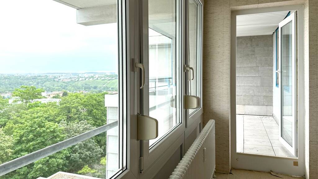 Die angebotene 2-Zimmer-Wohnung besticht durch ihre Helligkeit und großzügige Gestaltung auf etwa 59 m² im 8. Obergeschoss einer großen Wohnanlage. Der stufenlose Zugang führt direkt durch den Flur in das geräumige Wohn- und Esszimmer mit direktem Zugang zum Balkon. Von hier aus haben Sie einen herrlichen Blick über Stuttgart, der zu jeder Jahreszeit beeindruckend ist. Durch die großen modernen Fenster strömt viel Tageslicht in den Raum und schafft eine angenehme Atmosphäre.