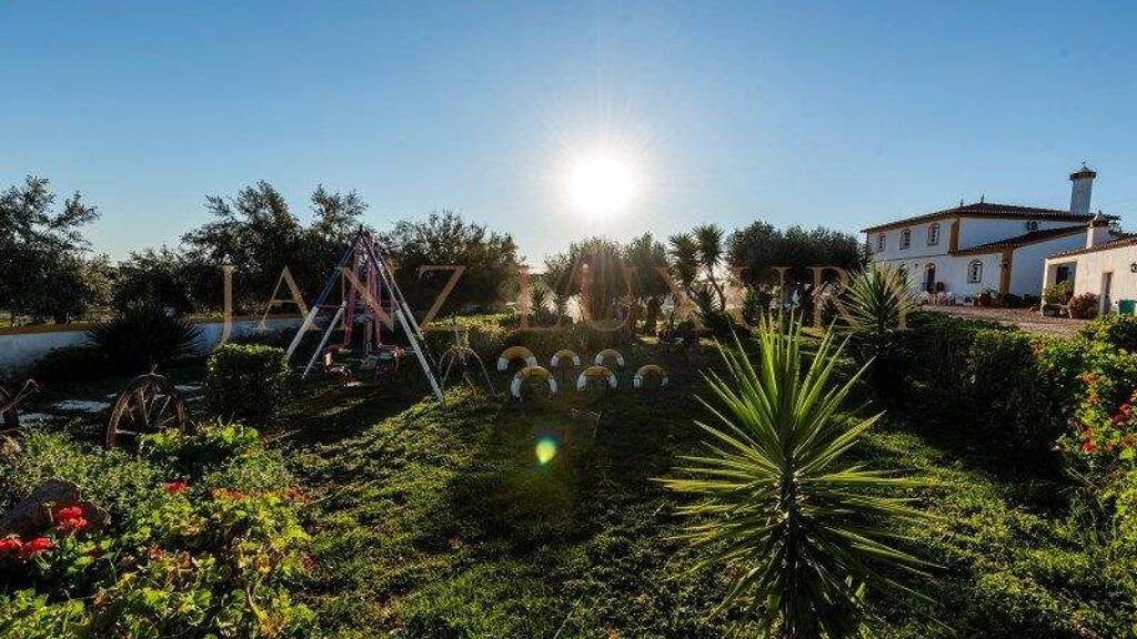 Dieser Alentejo-Hügel ist mit einem Gesamtumfang von 5.000 Metern ummauert. Es verfügt über eine Quelle mit ganzjährig reichlich Wasser, die einen See versorgt, sowie etwa 400 umliegende Hektar, Weideflächen mit Elektrozaun, subventionierte Hundertjahr-Olivenbäume, ein Haus, trockenes Land und Anbauflächen mit Tropfbewässerungssystem.