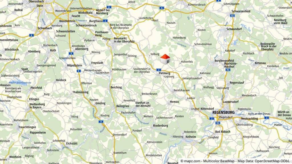 Von hier aus erreichen Sie auch die Autobahnen A 6, A 9 und A 93. Aber nicht nur per Straße ist die Parsberg hervorragend angebunden. Für die Anbindung an die Schiene verfügt die Stadt über einen Bahnhof an der Strecke Nürnberg-Regensburg mit RE-Haltestelle.