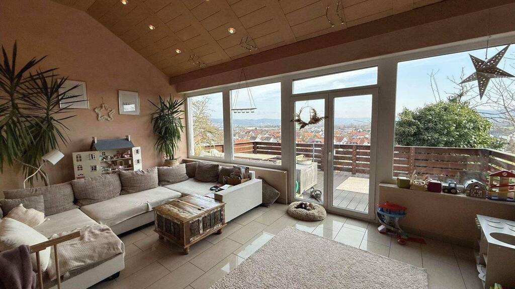 - ca. 129 m² Wohnfläche - 4,5 Zimmer - großer Südbalkon (ca. 20 m²) mit Fernblick - Baujahr ca. 1991 - nur 2 Wohneinheiten im Haus - separater Eingang (Haus-im-Haus-Charakter) - Badezimmer ca. 2016 renoviert - separates Gäste-WC - Fliesen- und Laminatböden - Fußbodenheizung - neue Ölzentralheizung (2023) - 1 KFZ-Stellplatz