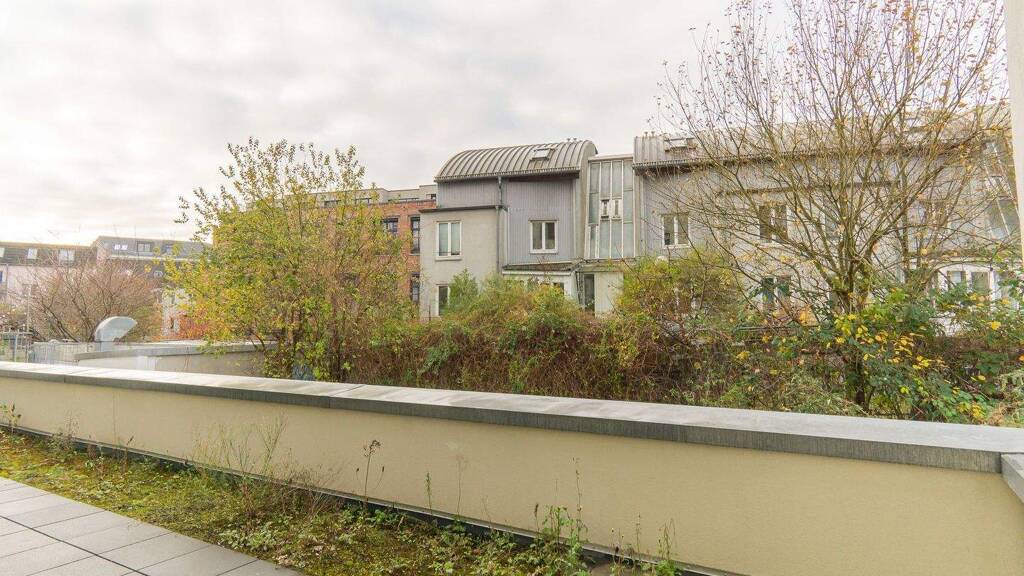 Die rund 99,9 m² große Wohnfläche verteilt sich auf drei geräumige Zimmer, eine großzügige Küche sowie zwei Bäder. Ein besonderes Highlight ist die große Dachterrasse mit Südwest-Ausrichtung zum begrünten Innenhof, die einen ruhigen Rückzugsort vom lebendigen Treiben des Viertels bietet.