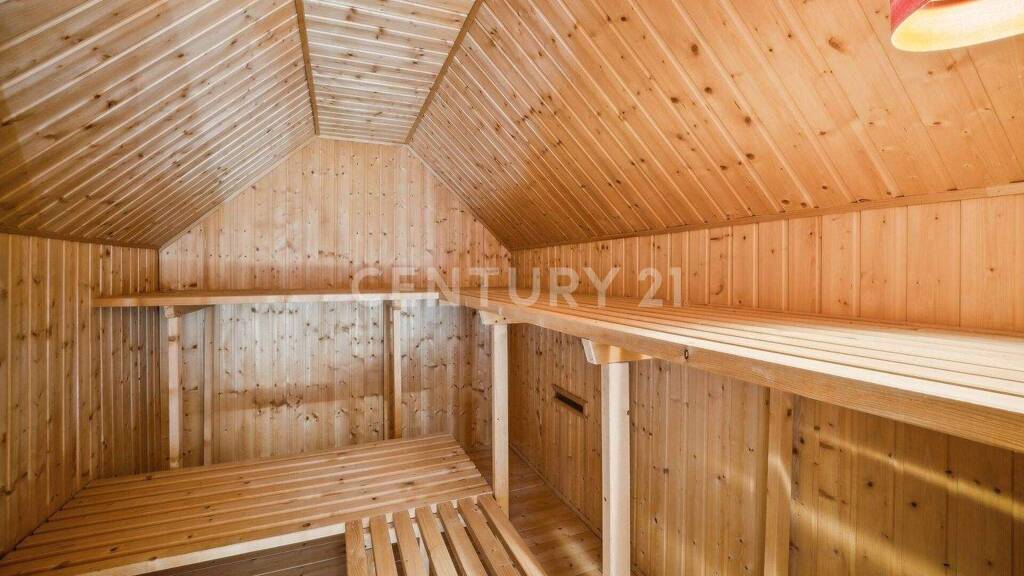 Ein besonderes Highlight ist die im gesamten Haus installierte Bang-&-Olufsen-Multimediaanlage, die ein hochwertiges Audioerlebnis in allen Wohnbereichen ermöglicht. Holzfenster unterstreichen den warmen Charakter der Immobilie und die solide Bauqualität.