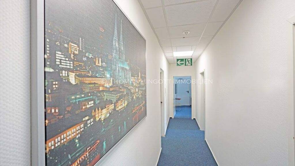 Die angebotenen Büroräume befinden sich im 1. Obergeschoss einer überwiegend gewerblich genutzten Immobilie. Die vier Räume sind über einen Flur miteinander verbunden. Zusätzlich steht ein Serverraum zur Verfügung.