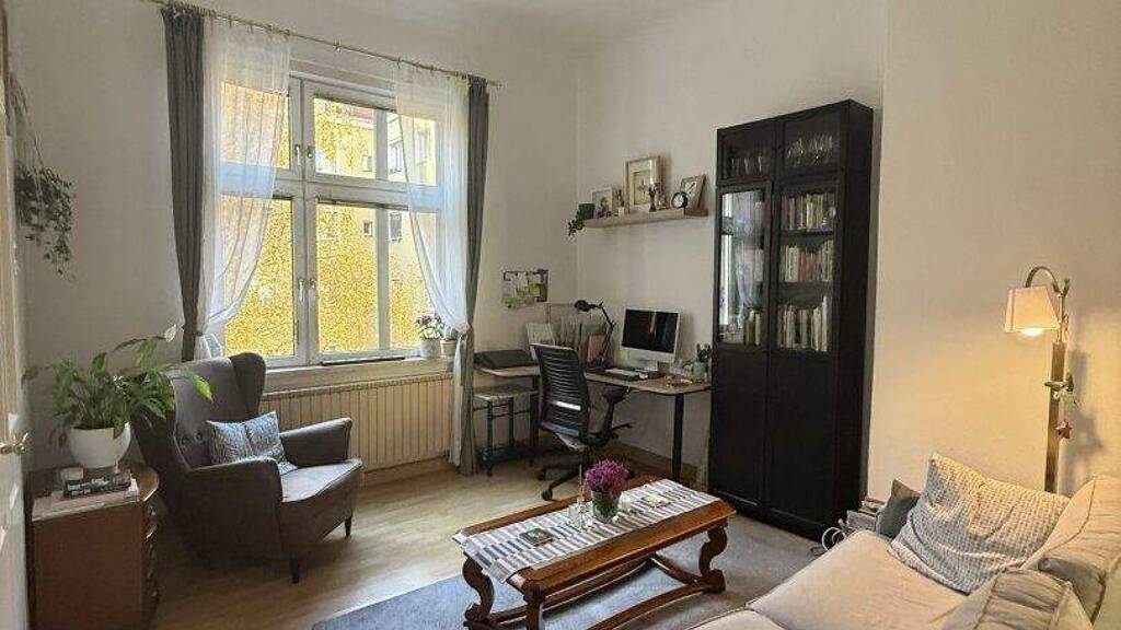 Über den Vorraum gelangt man in das separate WC mit Handwaschbecken sowie in das großzügige Wohnzimmer, das zum ruhigen Innenhof ausgerichtet ist und durch viel Tageslicht besticht. Von hier aus führen zwei Wege weiter: auf der einen Seite in das Schlafzimmer, das zur ruhigen Seitengasse orientiert ist und über einen kleinen Balkon verfügt - perfekt für den ersten Kaffee am Morgen oder einen Moment frischer Luft. Auf der anderen Seite gelangt man in die gepflegte Küche, von der aus das Badezimmer mit Dusche, Bidet und Fenster erreichbar ist - ein angenehmes Detail, das Licht und Frischluft garantiert.
