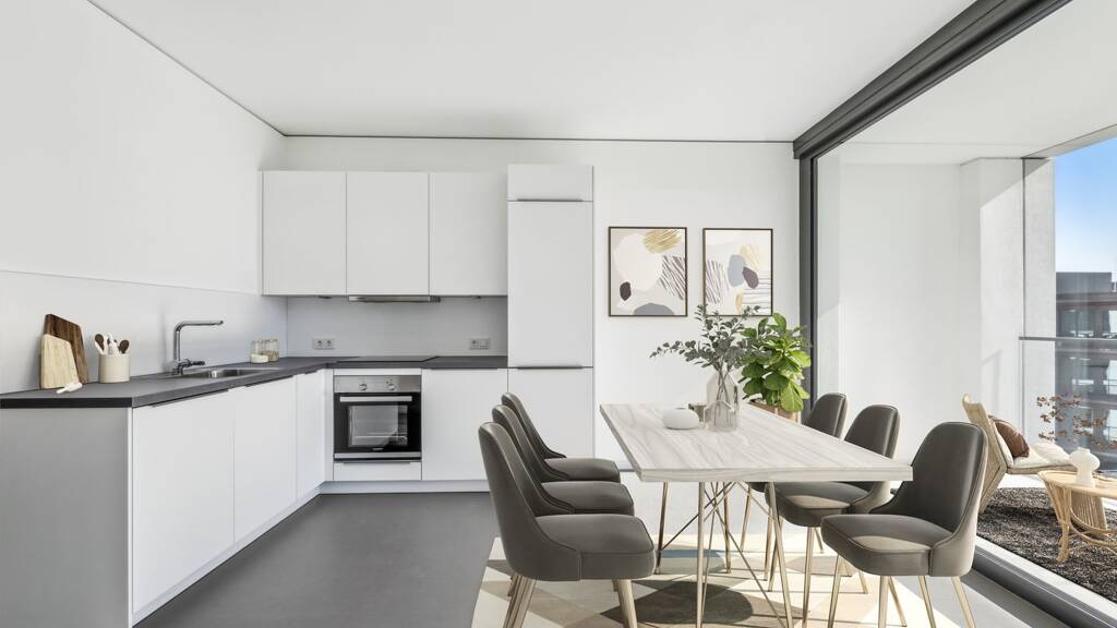 Alle Wohnungen verfügen über eine voll ausgestattete Einbauküche, die Ihnen zusätzlichen Komfort bietet.