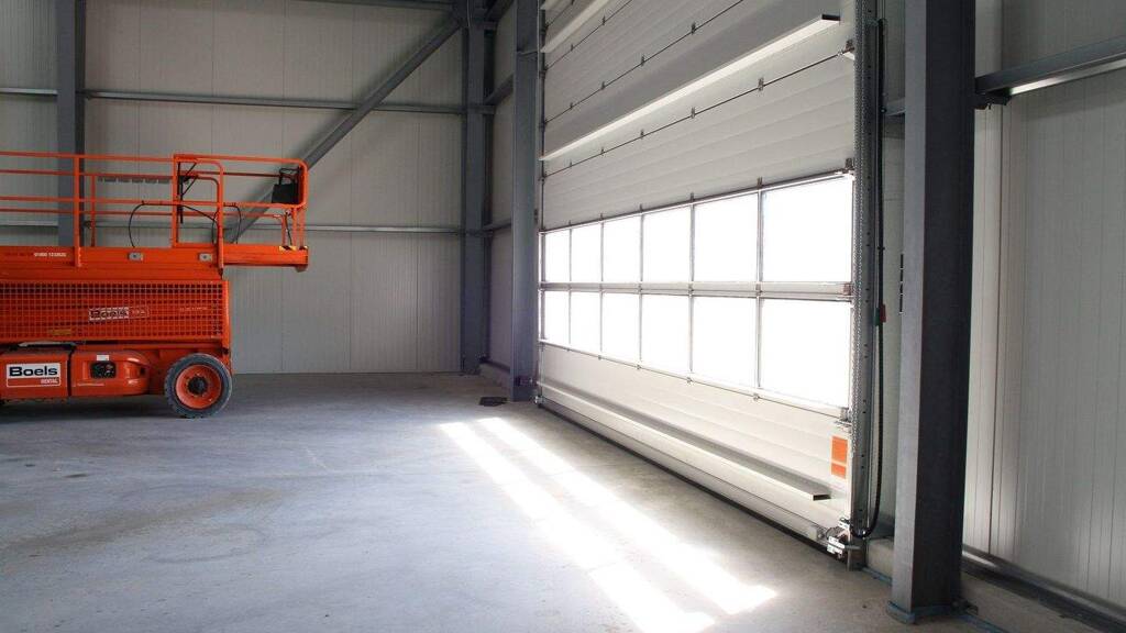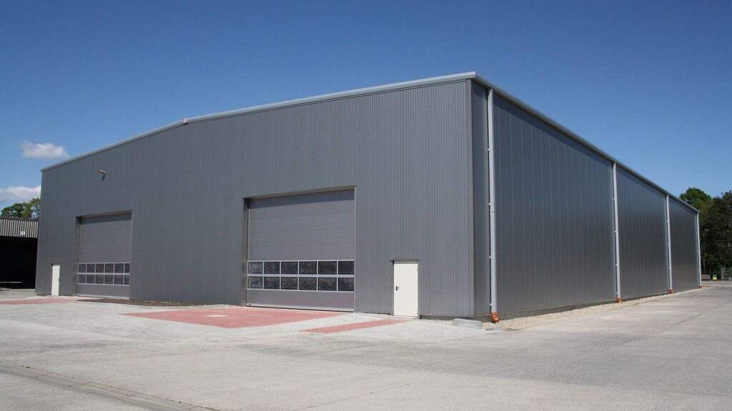 Zugang: Großzügige, voll gedämmte Toranlagen (6,50 m x 5,00 m) mit Fernbedienung und separater Schlupftür.