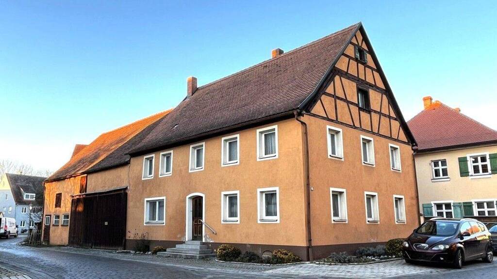 Bei dem angebotenen Objekt handelt es sich um das denkmalgeschützte "Ackerbürgerhaus" aus dem Jahr 1788. Der historische Fachwerkcharakter ist stellenweise erhalten. Die Immobilie ist jedoch von den Umbauten aus der zweiten Hälfte des 19. Jh. und der Mitte des 20 Jh. geprägt. Das Anwesen liegt im Südosten des historischen Stadtkerns von Merkendorf und bietet Ihnen ca. 160 m² Wohnfläche. Im Erdgeschoss befindet sich neben dem Wohnzimmer noch ein Schlafzimmer, die Küche, ein WC sowie der Zugang zur Scheune. Im Obergeschoss befinden sich vier Schlafzimmer, die ausreichend Platz für Familienmitglieder oder Gäste bieten. Diese Räume lassen sich flexibel nutzen. Ebenso finden sie hier ein Badezimmer. Das Wohnhaus ist teilweise unterkellert. Angrenzend an die Räume im Erdgeschoss liegen die ehemalige Scheunen- und Stallgebäude. Diese unterliegen nicht dem Denkmalschutz, was Ihnen einen größeren Spielraum bei der Umgestaltung und Nutzung ermöglicht: etwa für handwerkliche, gewerbliche und kreative Zwecke oder als weiterer Wohnraum. Auf dem ca. 421 m² großen Grundstück stehen noch weitere Nebengebäude (teils in schwierigem Zustand). Die Immobilie ist stark renovierungsbedürftig und gibt Ihnen somit die Freiheit, Ihre persönlichen Vorstellungen und Ideen zu verwirklichen. Das Objekt eignet sich sowohl für Privatpersonen als auch für Gewerbetreibende, die ein historisches Ambiente mit vielseitigem Nutzungspotenzial zu schätzen wissen. Die Immobilie ist sofort verfügbar.