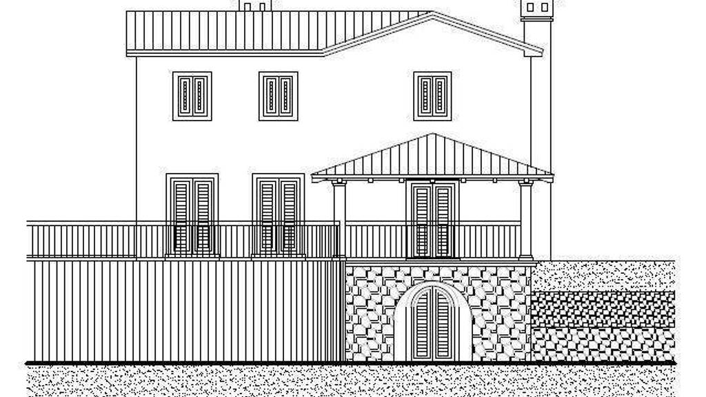 Geplant ist ein stilvolles Wohnhaus mit 193,81 m² Wohnfläche auf drei Ebenen, Terrasse und Pool. Das Konzept vereint traditionelle Elemente (Kamin, Stein, Fensterläden) mit modernen Annehmlichkeiten und einer durchdachten Raumaufteilung, inklusive separatem Arbeitsbereich, Garderobe und Bad im Obergeschoss. Ein Pool, großzügige Terrassenflächen und der fantastische Meerblick machen das Anwesen zu einem Rückzugsort mit besonderem Flair.