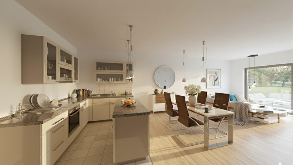 Die 3 – Raumwohnungen bestehen aus einem großzügigem, lichtdurchflutetem Wohn-/Essbereich mit offener Küche und direktem Blick ins Grüne. Hinzu kommen das Schlafzimmer, ein weiteres Zimmer - individuell als Kinder-, Arbeits- oder Gästezimmer nutzbar - und ein Badezimmer sowohl mit Dusche als auch Wanne. Zudem bietet ein Abstellraum zusätzlichen Stauraum.