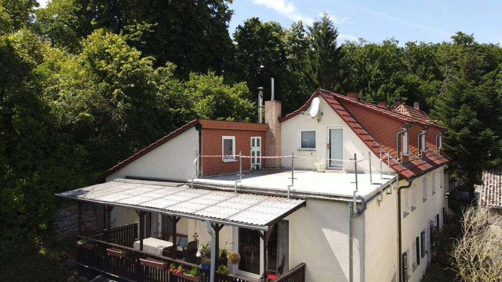 Im Obergeschoss befinden sich zwei weitere 2-Raumwohnungen: Wohnung II mit ca. 42?m² - die kleinste Einheit des Hauses - sowie Wohnung III, die mit ca. 85?m² die größte Wohnung darstellt. Letztere besticht durch einen gemütlichen Kamin und eine urige Sonnenterrasse mit Blick ins Grüne.