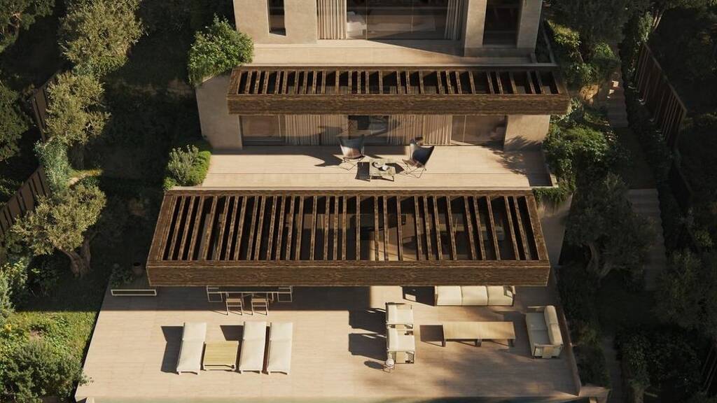 Der Zugang zum Haus erfolgt über eine Kassette, die einen Panoramablick auf die Umgebung bietet. Auf der ersten Ebene befindet sich das Hauptschlafzimmer mit eigenem Ankleidezimmer, Bad und Terrasse. Ein Podest für ein Schlafzimmer mit eigenem Bad, das die größtmögliche Privatsphäre und Intimität bietet.