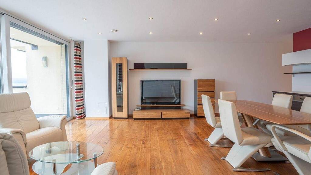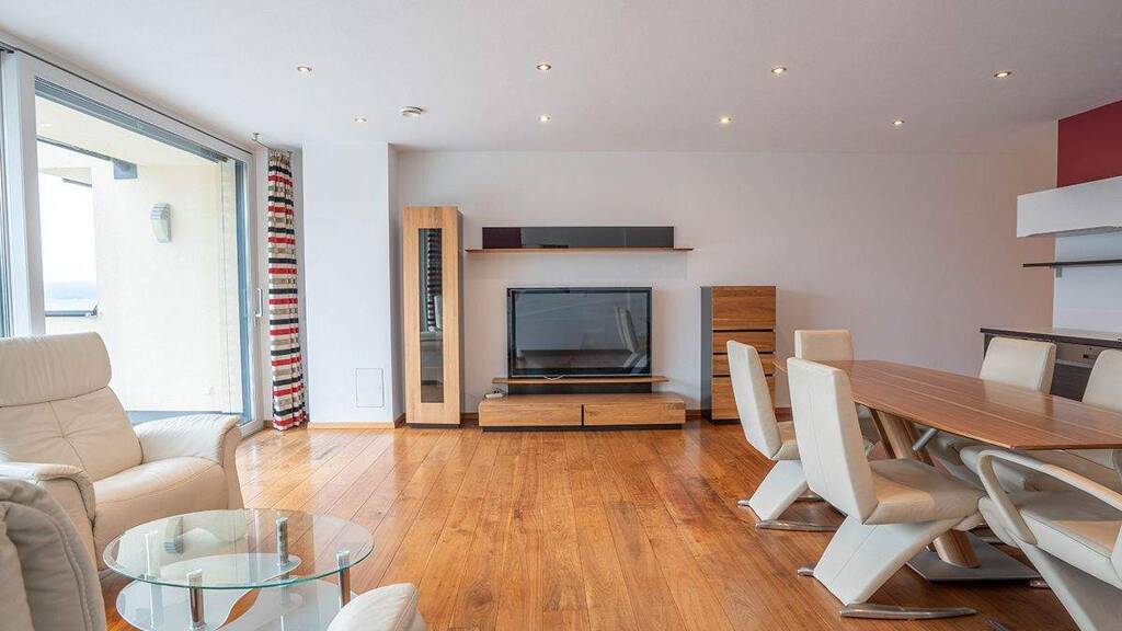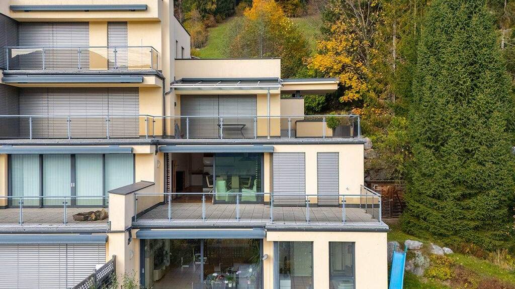 Die charmante, auf der Sonnenseite gelegene Wohnung mit rund 80 m² überzeugt durch ihre großzügige Raumaufteilung und ein besonderes Highlight: die große Sonnenterrasse mit beeindruckendem Panoramablick auf die Radstädter Tauern, Lackenkogel in Altenmarkt und Grießenkar in Flachau. Hier lässt sich der Ausblick auf die umliegende Bergwelt in vollen Zügen genießen. Eine elektrisch steuerbare Markise, sowie elektrische Außenraffstore sorgen für angenehme Beschattung.
