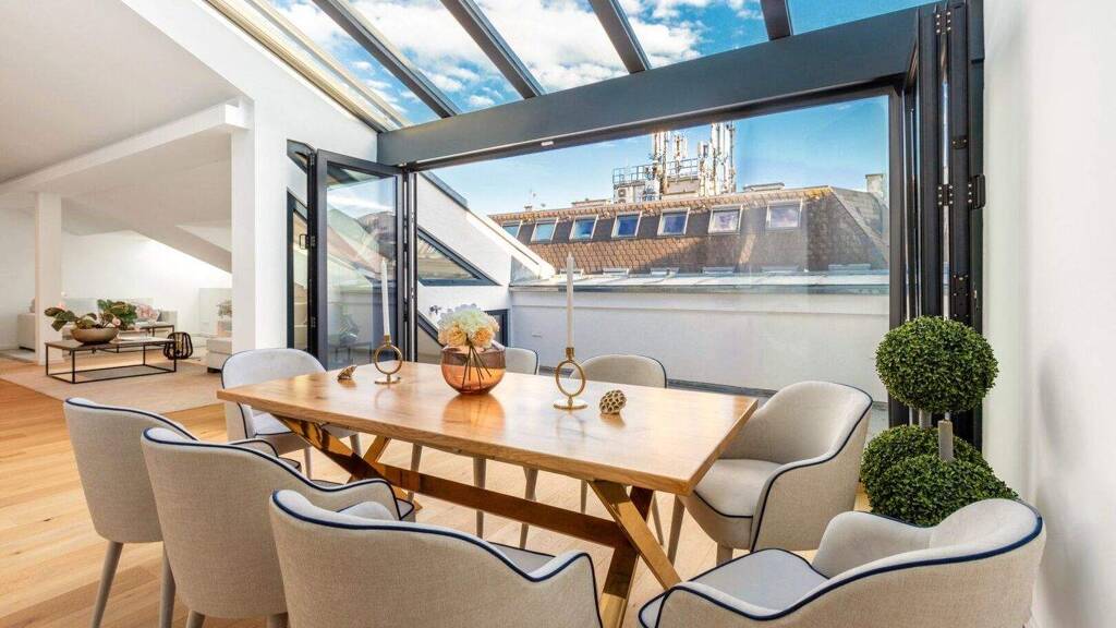 Diese außergewöhnliche Penthouse-Residenz im Herzen des 1. Wiener Gemeindebezirks vereint rund 361,53 m² Wohnfläche sowie ca. 10,15 m² Terrasse, mit architektonischer Großzügigkeit und kompromisslosem Anspruch an Qualität und Privatsphäre auf zwei Ebenen.