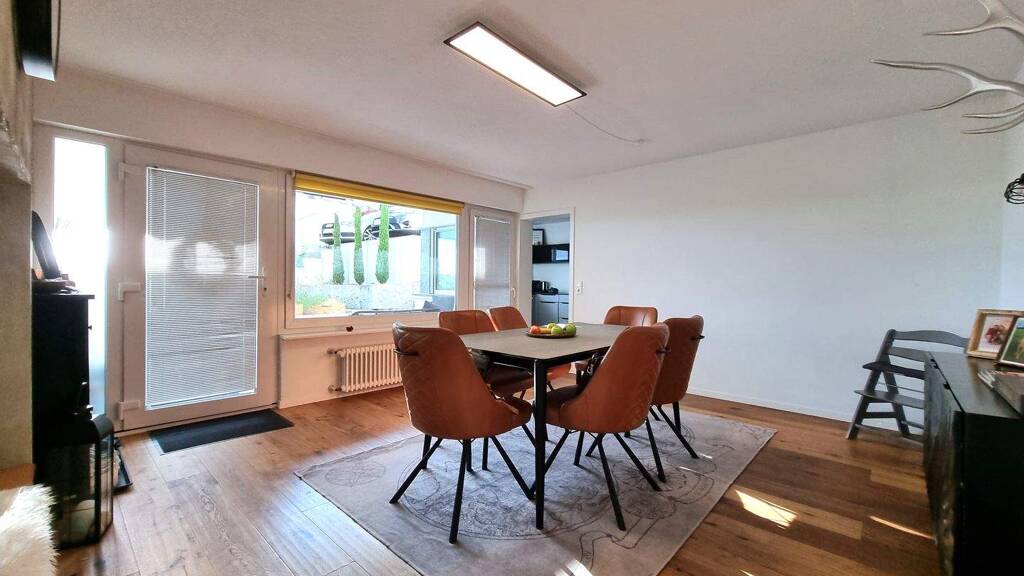 HIGHLIGHTS: * Einzigartige Eigentumswohnung mit eigener Einliegerwohnung – Haus-im-Haus-Feeling in exklusiver Panoramalage über Tiengen * Hochwertige Materialisierung sowohl im Innenbereich als auch bei den Außenanlagen * Große PKW-Garage mit zusätzlichem Außenstellplatz und ausreichend Stauraum im Kellergeschoss * Tolle Terrassen- und Balkonflächen mit unverwechselbarem Weitblick über Tiengen und in die Schweiz * Sehr ruhige und ansprechende Wohngegend mit unmittelbarem Bezug zur Natur und hohem Freizeitwert * Perfekte Kombination: selbst einziehen und gleichzeitig über die Ferienwohnung im Gartengeschoss komfortabel refinanzieren KEY FACTS: * Massiv erbautes 3-Fam.-Haus aus dem Jahr 1971 mit einer Grundstücksfläche von total 827 m² * Verkauft werden: 1 x 5-Zi. Hauptwohnung ca. 152 m² 1x 3-Zi. Einliegerwohnung ca. 72 m² 1x Stellplatz, 1x Garage * Eigene Zugänge zu den einzelnen Wohneinheiten (kein gemeinsames Treppenhaus o.ä.) * Gaszentralheizung aus dem Jahr 2005 mit Heizkörper in den Räumen und zentraler Warmwasseraufbereitung * Bereits umfangreich modernisiert (u. a. Dach, Fenster, Bäder, Küche, Kaminofen, Markisen, Rollläden) – mit nur überschaubarem Potenzial für weitere Optimierungen nach Wunsch *Kaufpreis: 749.000€ Provisionsfrei