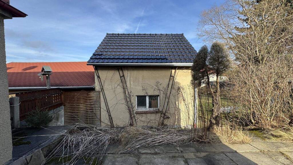 Die Raumanordnung ist übersichtlich und praktisch gehalten. Die Doppelhaushälfte kann für viele Lebenssituationen umgestaltet werden. Das massive Nebengebäude, welches als Garage mit angrenzendem Schuppen genutzt werden kann, erweitert die Möglichkeiten deutlich und eignet sich sowohl für Fahrzeuge als auch für Abstell- oder Hobbyzwecke. Bei Nutzung als Garage muss eine neue Zufahrt geschaffen werden. 2024 hat es eine neue Eindeckung bekommen. Der Garten bietet viel Platz für Erholung, Spiel, Gartenarbeit oder einfach Zeit im Freien.
