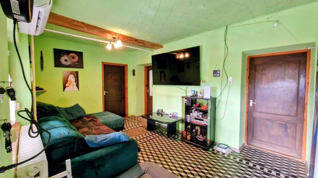 Das Grundstück ist komplett teil eingezäunt, es gibt mehrere Obstbäume. Dieser Bauernhof besteht aus einem Wohnhaus, 1 Nebengebäude mit Garage und 1 Kleintierstallung und 1 Pferdestallung. Wohnhaus ca.83 m²: Das Haus ca. 60 Jahre alt Bauernhaus ist renoviert und auf die heutigen Bedürfnisse umgebaut. Das Wohnhaus wurde mit Lehm und Ziegel gebaut. Die Ziegelwände hat 5 cm dick Wärmedämmung. Eingangsbereich - Essbereich, Küche, 3 Schlafzimmer, 1 Bad, Heizraum, Keller, 1 überdachte Terrasse. Nebengebäude hat 2 Garage, 1 Sommerküche, Speisekammer. Auf dem Grundstück befindet sich noch 1 Kleintierstallung und 1 Pferdestallung. Holzzentralheizung mit Heizkörpern – 2 Kamine, 1 Klimaanlage (5,3Kw). Staatliche Stromversorgung (220V / 16Amper), Abwasser – Sickergrube. Das Grundstück verfügt über 2 Brunnen und 1