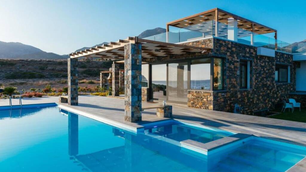 Kreta, Mochlos: Einzigartige Villa am Meer mit großem Pool und Gärten zu verkaufen