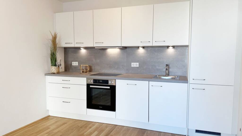* Moderne Komplettküchen mit Elektrogeräten der Marke Miele (Geschirrspüler, Einbauherd mit Backrohr, Kühlschrank und Dunstabzug)
