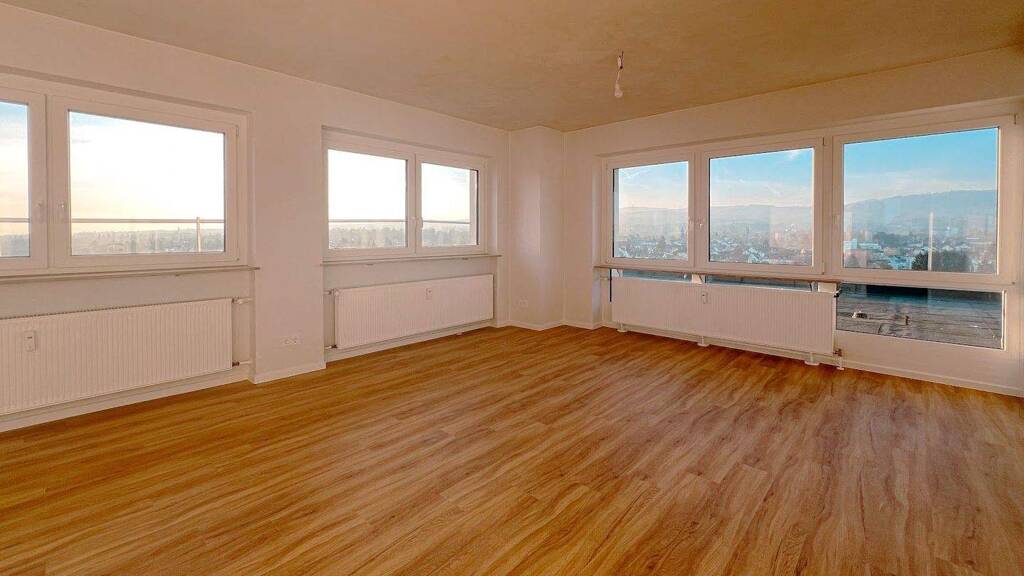 Die 2-Zimmer-Penthousewohnung im 15. Obergeschoss bietet auf rund 68 m² ein modernes Wohnambiente mit beeindruckendem Ausblick über Bad Homburg. Die Wohnung wurde frisch renoviert und präsentiert sich in einem zeitgemäßen, gepflegten Zustand. Ein moderner Vinylboden sorgt in den Wohnräumen für eine angenehme Atmosphäre, die mit Raufasertapeten ein ruhiges und neutrales Gesamtbild erhält. Küche und Bad sind mit großformatigen Fliesen ausgestattet und unterstreichen den modernen Charakter der Wohnung. Das Duschbad verfügt über Fenster sowie hochwertige Badobjekte und Markenfabrikate. Eine praktische Abstellkammer schafft zusätzlichen Stauraum. Eine Einbauküche ist nicht vorhanden, sodass die Küche individuell nach eigenen Vorstellungen eingerichtet werden kann.
