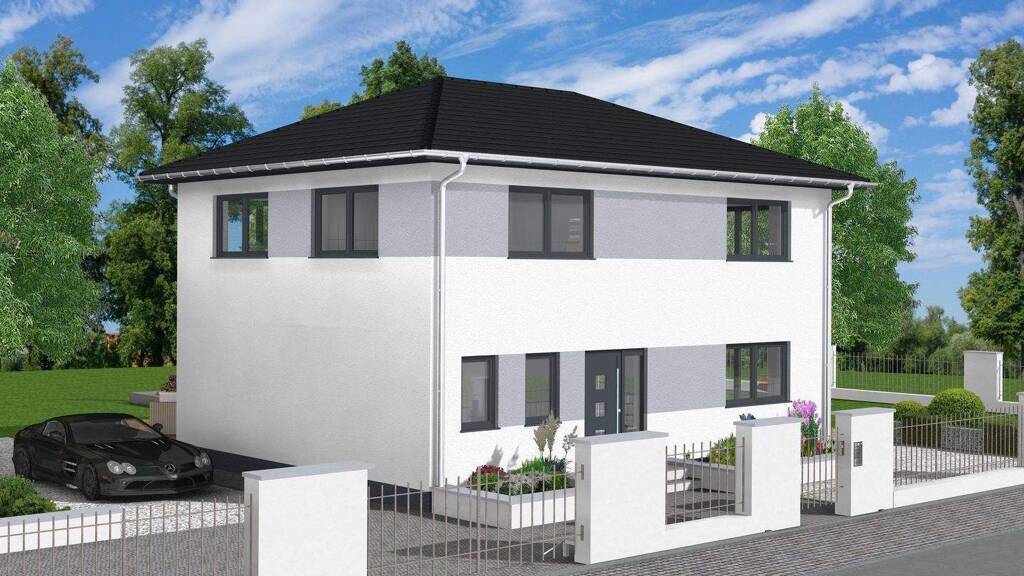 Unser Entwurf VarioCity 138 SP für Parzelle 4 (830 m²) sieht ein modernes, zweistöckiges Stadthaus vor – selbstverständlich anpassbar an Ihre persönlichen Wünsche.