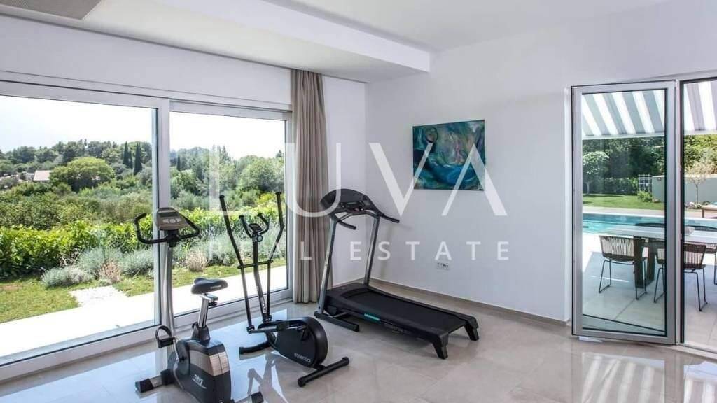 Neben dem hochwertigen Interieur bietet die Villa auch einen wunderschönen Panoramablick auf die Adria, der das exklusive Ambiente zusätzlich unterstreicht. Die Lage der Villa bietet die perfekte Balance zwischen Ruhe, Privatsphäre und Nähe zu allen wichtigen Einrichtungen, darunter Strände, Restaurants und internationale Verbindungen.