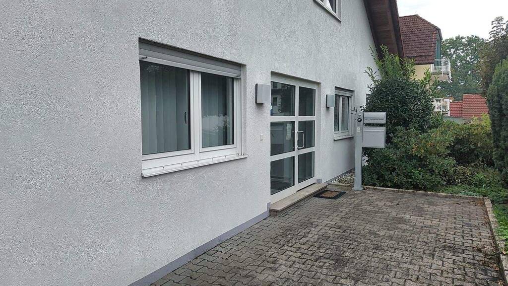 Ausstattung Büro: Der Zugang erfolgt über einen separaten Gewerbezugang. Es sind 3 Büroräume vorhanden, der Eingangsbereich ist repräsentativ angelegt worden und es ist eine Gemeinschafts-WC-Anlage vorhanden. Die EDV-Verkabelung ist in allen Büroräumen umfangreich vorhanden. Auch ist eine kleine Teeküche eingebaut. Der Fußboden ist mit Vinyl ausgelegt. Teilweise sind die Räumlichkeiten mit Klimageräten ausgestattet. Die Teeküche ist mit Einbaumöbeln bestückt. Die Wände und Decken sind gefilzt und weiß angelegt. Die Innentüren sind ebenfalls weiß, auch die Objekte und Fliesen in der WC-Anlage.