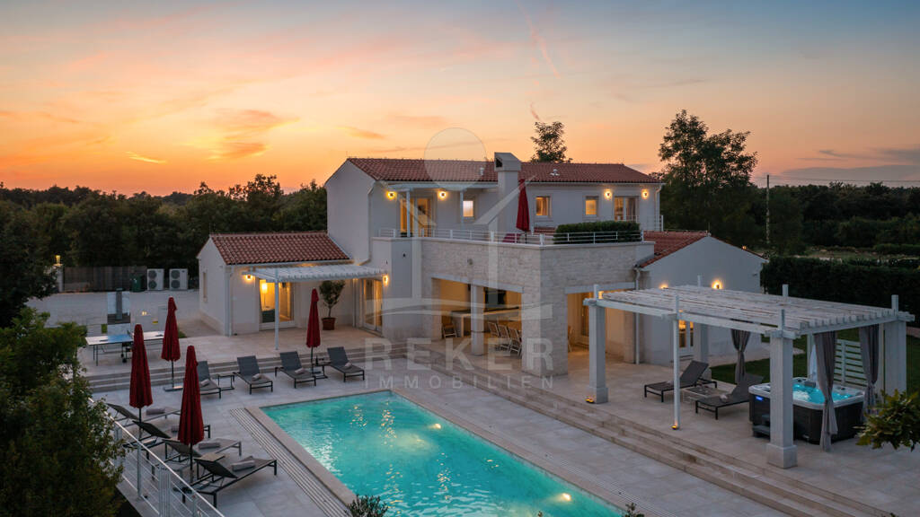 Willkommen in Ihrer ganz persönlichen Luxus-Oase in Rezanci, einer Gemeinde der mittelalterlichen Stadt Svetvincenat in Zentralistrien! Diese Designer-Villa der Extraklasse beeindruckt mit einem beheizten Außenpool, einem großzügigen Spa-Bereich und einem modernen Design, das keine Wünsche offen lässt. Eingebettet in üppiges Grün erwartet Sie hier absolute Entspannung und Erholung. Genießen Sie die sonnigen Tage Istriens auf der großzügigen Terrasse oder lassen Sie sich im exklusiven Wellnessbereich verwöhnen. Diese Villa bietet Ihnen die Möglichkeit, Ihr Leben auf ein neues Level zu heben, sei es als persönlicher Rückzugsort oder als einzigartiges Ferienobjekt für anspruchsvolle Gäste. Kontaktieren Sie uns noch heute und machen Sie den ersten Schritt, um sich Ihren Traum von Luxus und Lebensqualität zu erfüllen.