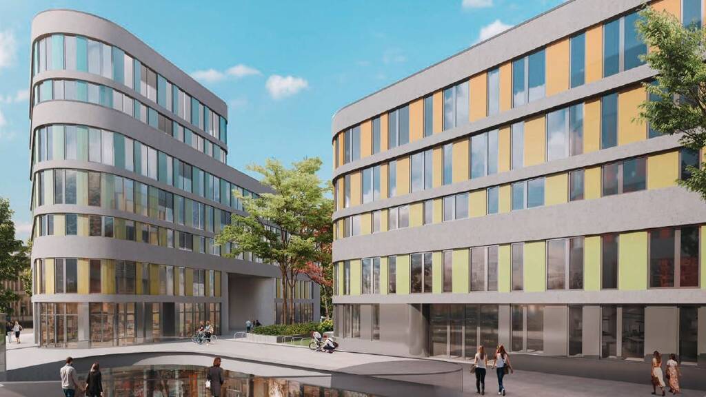 Die moderne Gewerbeimmobilie zeichnet sich durch ihre flexiblen und individuell gestaltbaren Flächen aus, die für Büro, Gastronomie oder Einzelhandel zur Verfügung stehen. Das Gebäude strebt die DGNB-Zertifizierung in Gold an und setzt auf eine nachhaltige Bauweise, die modernste Technik mit anspruchsvoller Architektur verbindet.