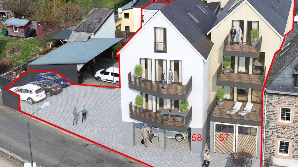 Die Eigentumswohnung befindet sich in einem nachhaltigen Neubau nach KfW-40-EE-Standard und überzeugt durch eine moderne, umweltfreundliche Beheizung mittels Luft-Wärmepumpe – energieeffizient, zukunftssicher und wertbeständig. Das Objekt entsteht in attraktiver Lage am Nikolausufer, der repräsentativen Einfahrtsstraße in die bekannte Moselstadt Bernkastel-Kues. Die Region zählt zu den schönsten und touristisch gefragtesten Urlaubsgebieten Deutschlands und steht für hohe Lebensqualität sowie nachhaltige Wertentwicklung. Die Wohnimmobilie bietet dadurch ein überdurchschnittliches Wertsteigerungspotenzial – sowohl zur Eigennutzung als auch als Kapitalanlage. Die Fertigstellung des Neubaus ist für 2026 geplant.